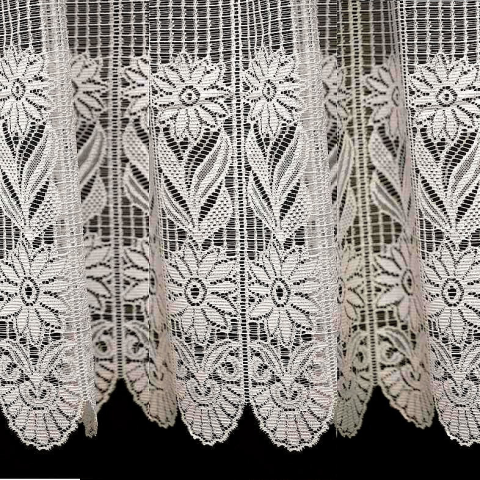 1 kép Vitrage Vitrázs függöny, SIROK fehér virágos, 30 cm magas