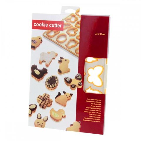 Tészta kiszúró rács, húsvéti aprósütemény, műanyag, 24×33 cm A minőségű műanyagból készült formakeret segítségével egyszerre több különböző alakú tésztaforma kiszúrása lehetséges. A kiszúró mérete: 24×33 cm. Tisztítás: mosogatószeres vízzel. Származási
