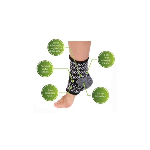 Mágneses bokaszorító turmalinnal (L) VivaFit mágneses bokaszorító turmalinnal • Intenzív mágnesterápia az anatómiailag fontos pontokon 8 darab, egyenként 1700-1850 Gauss erősségű mágneskoronggal. • A turmalin az általa kibocsájtott távoli infrasugarakn