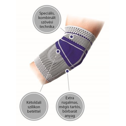 - Több, mint egyszerű elasztikus könyökszorító, mert extra szilikon párnával rendelkezik a könyök belső és külső oldalán, hogy speciális védelmet nyújtson