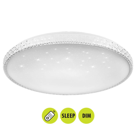A mennyezetre szerelhető LED lámpatest színhőmérséklete változtatható (CCT), valamint 60 Watt teljesítményű. Megjelenése szintén különleges, hiszen búrájának kialakítása egy kristály felületére hasonlít.