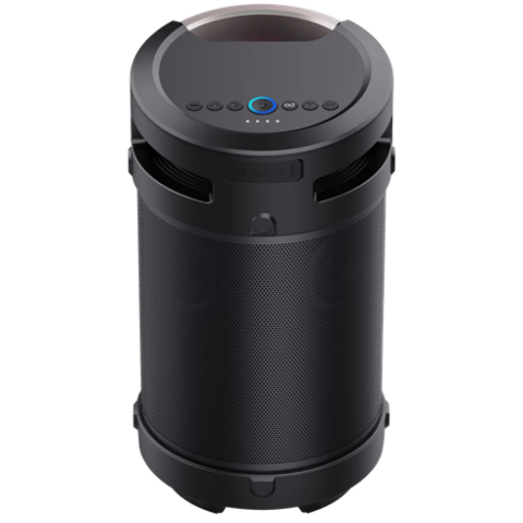 BS-700 hordozható BT hangszóró 5 hangszór, 50W teljesítmény (mély) 4x7W magas újratölthető aku (5000mAh) FM, RMS, USB, MP3, TWS, gitárbement, karaoke funkció, mikrofon nettó méretek: 21,5x39,x21,5 cm. LED fény