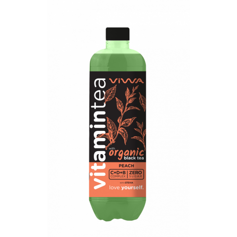 Viwa Vitamintea őszibarack ízű fekete tea 600ml (gluténmentes) Őszibarack ízű energiamentes szénsavmentes üdítőital organikus fekete tea kivonattal, hozzáadott vitaminokkal és édesítőszerekkel