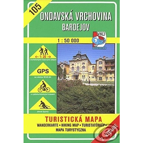 Ondavai-dombság Nyugat térkép, Ondavská Vrchovina - Bardejov túratérkép, Bártfa térkép, Bártfa és környéke VKÚ 105. Ondavai dombság Nyugat turista térkép 1:50 000