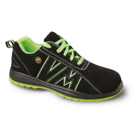 '- Felső rész: Velúr bőr, 1,6-1,8 mm vastagság - Belső: Légáteresztő hálós textil - Belső talp: HI-POLY anatómiailag kialakított könnyű PU hab, szövettel bevonva, antisztatikus - Talp: PU/PU olajálló, antisztatikus, csúszásgátló - Acél orrmerevítő - EN IS