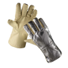 Hőálló ötujjas hő elleni védőkesztyű Kényelmes ötujjas hő elleni védőkesztyű aluminizált réteggel a kézfejen a széles szabás magas kényelmet biztosít 3 rétegű kivitel: a külső textil, alatta hőszigetelő réteg, a belső puha pamut a bőr mandzsetta csökke