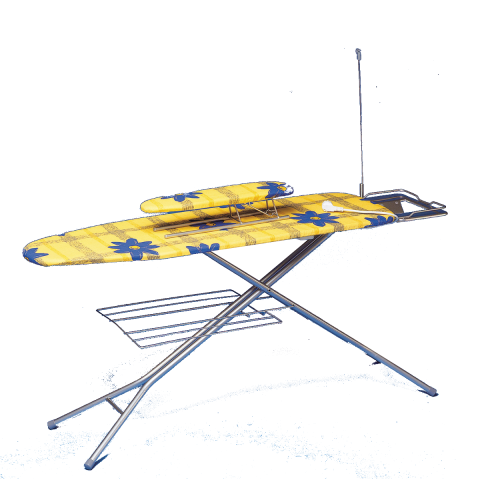 Elektromos vasalóállvány ujjvasalóval, mérete: 120x38cm, magassága 94cm.