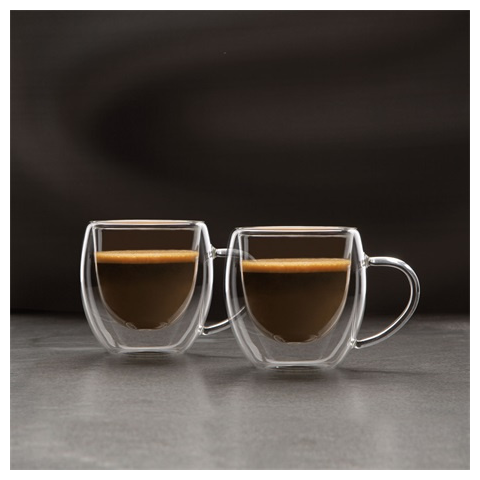 Az önfeledt kávézás, italfogyasztás öröme érdekében modern megjelenésű, duplafalú, boroszilikát üvegből készült pohár szett. Kiválóan alkalmas kávézáshoz, forró és hideg italok fogyasztására is. A dupla üvegfalnak köszönhetően a forró italok nem égetik meg a kezet. Könnyű üveg pohár A dupla üvegfalnak köszönhetően tovább megőrzi a benne lévő folyadék hőmérsékletét A hőtágulási együtthatóval rendelkezik Jobban elviseli a nagyobb hőingadozás