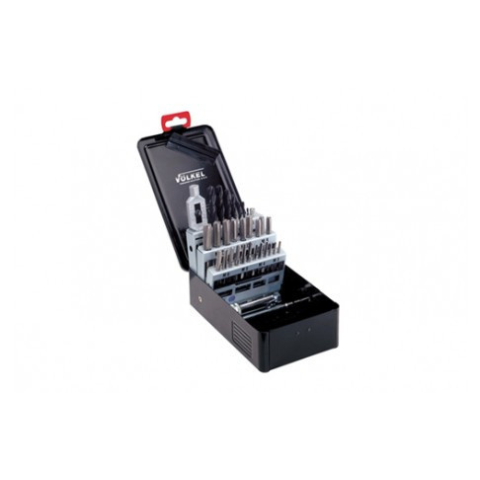 1 kép Völkel Kézi menetfúró készlet M3-M12 + magfúrók + hajtóvasak 16db-os HSS