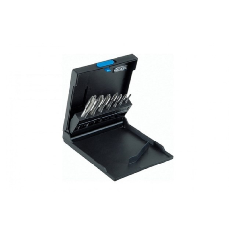 VÖLKEL Gépi menetfúró készlet 7 részes, metrikus normál menet, M3-M12 HSS-E Gépi menetfúró készlet, normál menet 7 részes, egyenes hornyú C bekezdéssel DIN371/376 HSS-E gyorsacél Tartalma: M3; M4; M5; M6; M8; M10; M12 HSS-E gépi menetfúró