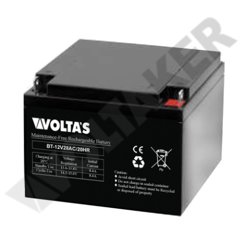 12V feszültségű, 28Ah kapacitású zárt savas/zselés ólom akkumulátor, melynek méretei 166*125*175 mm, Súlya 8 kg.A VOLTA’S zárt savas és zselés akkumulátorok teljesen gondozás mentesek és megbízható teljesítmény mellett, kiváló pénztárca kímélő megoldást nyújtanak.Várható élettartam optimális feltétlek mellett 5 év.
