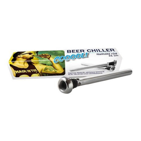 Allergiamentes acélból készült fémrúd. Sörös- vagy üdítősüvegbe helyezhető. Kiválóan használható italok hűtésére. 21 cm hosszú Egy darabos kiszerelés. .
