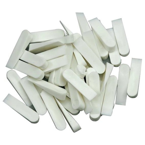 Kőműves szerszám - kerámia csempe kiegyenlítéséhez, Műanyag ékek a precíz csempefektetéshez. Méretek (H × SZ): 37 × 7 mmMennyiség: 50