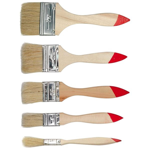 Festőecset - lapos, alkalmas vízbázisú festékek, festékek és impregnálás felvitelére, szőr anyaga sörte, fogantyú fa, ecset vastagsága 63 mm, egyfajta készlet, 5 db a csomagban VOREL ecsetkészlet 5 db - legfontosabb jellemzők A nagyszerű VOREL lapos ecset biztosítja a festékanyagok ellenőrzött felvitelét és a pontosan végzett ecsetvonásokat az élek mentén Felhasználási terül