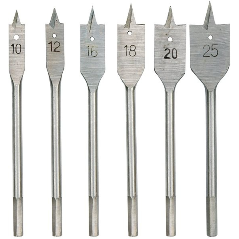 Fúrószár készlet - fa, lapos, hatszög befogatás, 6 darabos csomag A VOREL TO-22500 lapos fafúró készlet főbb jellemzői6 darabos lapos fafúró készletHCS szénacélból készült fúrókÁtmérők: 10, 12, 16, 18, 20 és 25 mmSúly: 0,25 kg
