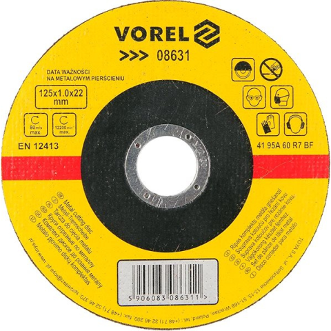 Vágótárcsa - átmérője 125 mm, vastagsága 1 mm, fém vágásához alkalmas A kiváló Vorel fémvágó korong 125 x 22 x 1,0 mm alapvető paraméterei A strapabíró VOREL vágókorong magas kopásállóságot biztosít Vastagság: 1 mm Átmérő: 125 mm A vágókorong könnyen felszerelhető a pon