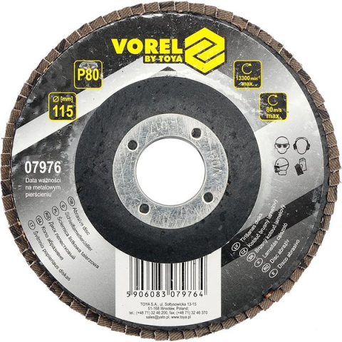 Csiszolókorong fa, fém és műanyag megmunkálásához - lamellázó, 115 mm átmérő, 40 szemcsézettség, 13300 ford/perc maximális sebesség, 22,2 mm szerelőnyílás Eme Vorel lamellás csiszolókorong 115 mm P40 fontosabb paraméterei Az időtálló VOREL csiszoló korong kiváló segítőd lesz az anyagok köszörülésénél és megmunkálásánál Durva felülete gyors anyagformálás
