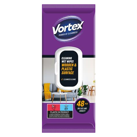 Teljes Vortex Nedves törlőkendő, fa- és műanyag felületre, 48 db, VORTEX termékleírás