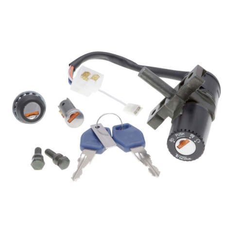 Zár szett / gyújtáskapcsoló - Aprilia Scarabeo 50/100 4TGyártó: VpartsTermékleírás:Komplett gyújtáskapcsoló szett az Aprilia Scarabeo 50cc 4-ütemű és 2-ütemű, valamint a Di-tech 100cc 2-ütemű és 4-ütemű robogókhoz. A szett tartalmazza: Gyújtáshordó