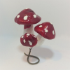 Élethű gomba, piros kalappal, pöttyökkel, beszúrható dróttal. 3,5cm / 5cm / 5,5cm magas