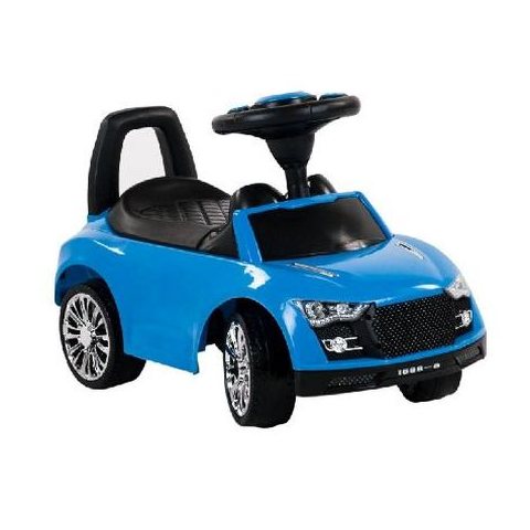 Az autó formájú, kék és fekete színkombinációjú bébitaxi egy masszív szerkezetű, műanyagból készült bébitaxi, amit nem csak a járdán lehet használni
