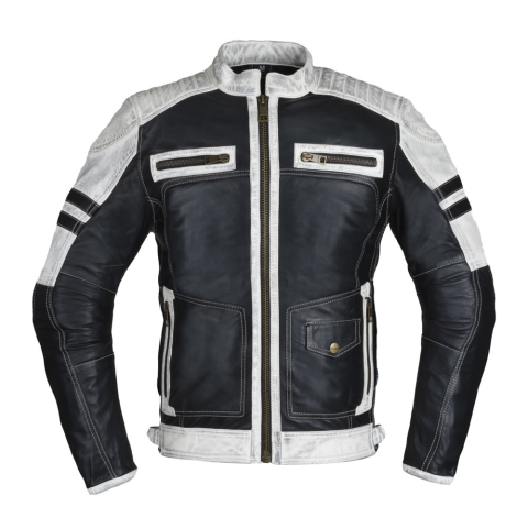 2 kép W-Tec Motoros bőrkabát W-TEC Esbiker fekete bézs csíkokkal 4XL