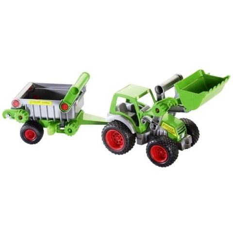 Fémtengelyes farmer traktor utánfutóval és homlokrakodóval minőségi alapanyagokból, valódi gumikerekekkel, akár intézményi felhasználásra is. Emelhető homlokrakodó, lecsatolható és nyitható egytengelyes utánfutó. Csomagolás mérete: 570×165×200 mm. 24 hónapos kortól ajánlott! WADER minőség!