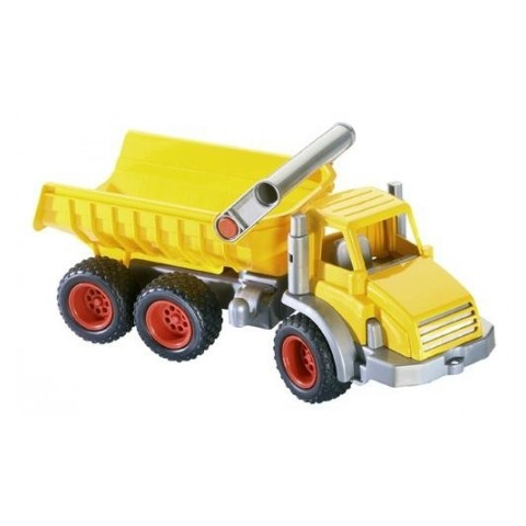 Három fémtengelyes dömper mozgatható billenő résszel, strapabíró műanyagból, valódi gumi- kerekekkel. A billenőrész egy stift kihúzásával dönthető, illetve visszaállítás után rögzíthető. A csomagolás mérete: 570×165×200 mm. 2 éves kortól ajánlott! Színbeli eltérés lehetséges. WADER minőség!