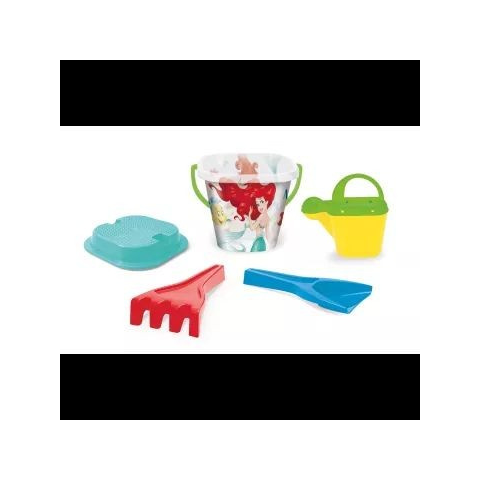 Rózsaszín homokozó szett Hercegnő és Kis hableány mintával, használható kertben, strandon. Minták IML technológiával, tartós, nem kopik, UV álló. Toxikus anyagoktól mentes. Méret: 18x20x28 cm.