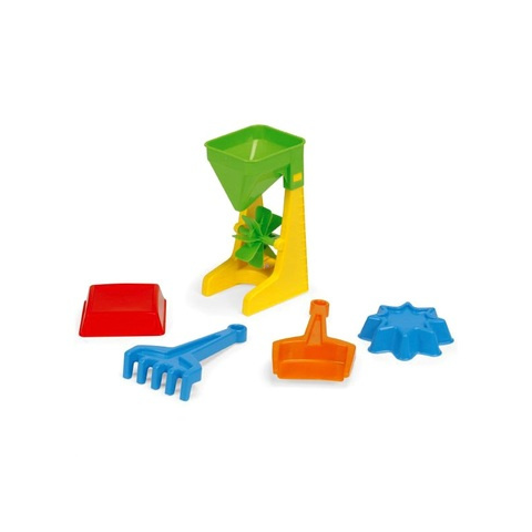 Műanyagból készült homokkal és vízzel is működő malom. Öntsd be a játék tetején a vizet vagy a homokot, ami lefolyva megpörgeti a lapátkereket. A csomagban egy kis lapát, gereblye és homokozó formák is megtalálhatóak. Csomagolás méretei: 17 x 21 x 13 cm. Tartalom: 1 db homokozó malom, 1 db lapát, 1 db gereblye, 2 db homokozó forma.