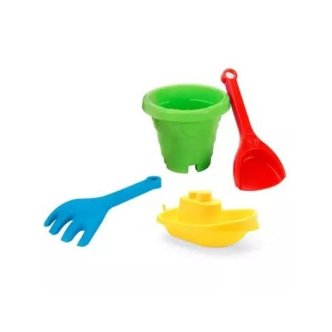 Vödör, lapát, gereblye, homokozóforma Csomagolás mérete: 21 x 19 x 15 cm