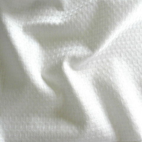 Fehér, normál vastagságú, 100% pamut, darázsszövet, waffle. Nagyon jó nedvszívó. Legkisebb rendelési mennyiség 1 méter. Fehér színű, darázsos, waffle pamutszövet. Az anyag a mosás/beavatás során zsugorodik, a darázsosság erőteljesebb lesz, az anyag