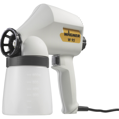 Wagner W95 festékszóró: - 230V/50Hz hálózati feszültségről működik, - teljesítménye 70 W, - legnagyobb szállított festékmennyiség: 140 g/perc, - legnagyobb szórónyomás 120 bar, - tartálytérfogat 600ml, - legnagyobb viszkozitás 40DIN-sec - hangnyomás 86 dB(A), 0.8 mm-es fúvókával, oldószerrel higítható alapozók és lakkfestékek, oldószerrel és vízzel higítható alapozók, favédő és fertőtlenítőszerek, növényvédő szerek, politúrok, pácok, olajok é
