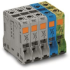 WAGO 285-159 50mm2 Háromfázisú nagyáramú sorkapocs készlet DIN 35 x 15 sínre, POWER CAGE CLAMP technológiával Tartalma: 3db 285-155 szürke + 1db 285-154 kék + 1db 285-157 zöld-sárga