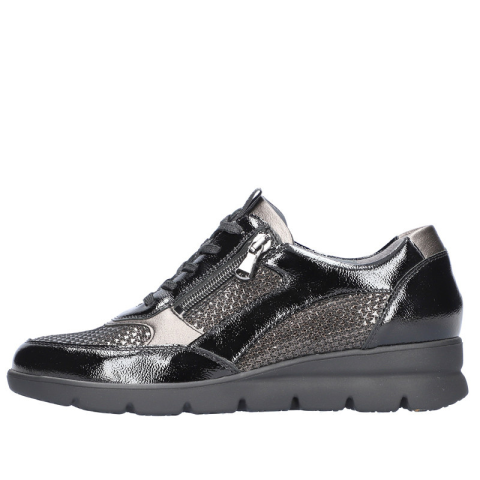 Waldlaufer 902001 304768 divatos női félcipő Kényelmes, divatos, fűzős női félcipő, széles bőségben, külső oldalán cipzárral. Modell: Waldlaufer 902001 304768 Szín: black / fekete Felsőrész: természetes lakkbőr Bélés: textil - természetes bőr