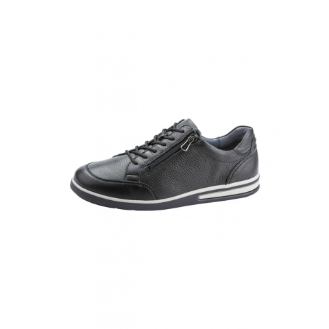 A Waldläufer férfi fűzős cipő, a K-Clemens kényelmes mindennapi társ. Sportos-elegáns, divatos fekete színű, amelyet a fehér-szürke talp és a bőrbetét egészít ki. Egyszerű színvilágának köszönhetően könnyen kombinálható számos ruhával. Az oldalsó cipzár