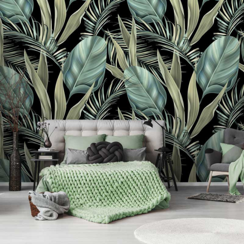 Trópusi zöld levél mintás fotótapéta A kép 368 cm széles és 280 cm magas - 4 db 92x280 cm-es részből áll. A csomag tartalmazza a felrakási útmutatót és a tapétaragasztót. Rendelésre gyártott termék, ezért a szállítási idő: 10-15 munkanap Ez a minta egyedi