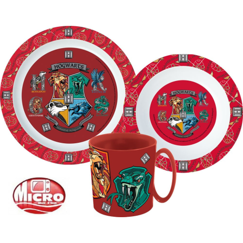 RAKTÁRRÓL AZONNAL! Harry Potter étkészlet, micro műanyag szett - BPA mentes - Származási ország: Spanyolország - A termék környezetbarát, újrahasznosítható anyagból készült a Föld védelmében A készlet tartalma: 1 db mélytálka (mikrózható műanyag) 1 db la