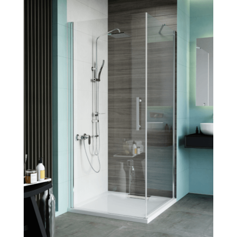 Keret nélküli, erős krómozott zsanérokkal ellátott nyílóajtós, modern zuhanykabin. A 6 mm víztiszta, edzett biztonsági üveg NANO bevonata elengedhetetlen megoldás a szennyeződések és a vízkőfoltok elkerülésére.