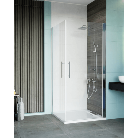 Keret nélküli, erős krómozott zsanérokkal ellátott nyílóajtós, modern zuhanykabin. A 6 mm víztiszta, edzett biztonsági üveg NANO bevonata elengedhetetlen megoldás a szennyeződések és a vízkőfoltok elkerülésére.