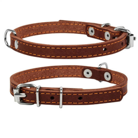 1 kép WAU DOG 1-Ply bőr Nyakörv 10mm, 22-30cm, barna