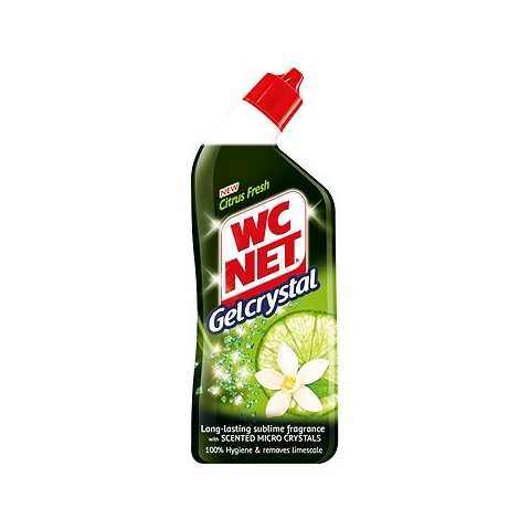 WC gél - a tökéletesen tiszta és friss illatú WC-ért A WC NET Crystal Citrus Fresh egy gyöngyházfényű mikrokristályokat tartalmazó gél, amelyek kiválóan tapadnak a WC falához és hatékony tisztítást biztosítanak. Az új összetételnek és kellemes illatnak