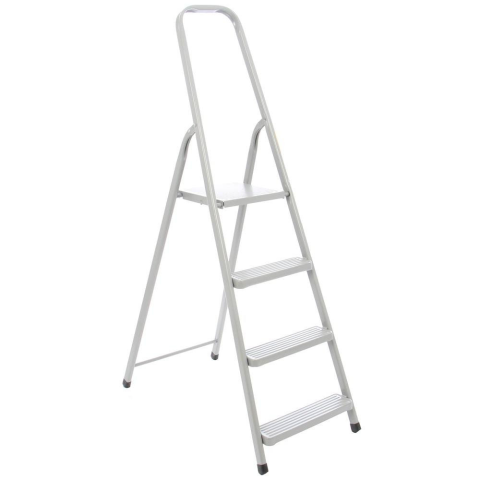 Könnyű és masszív alumíniumból készült minőségi háztartási létra 4 fokos (3+1 fellépő) kialakítású 120 kg-os terhelhetőséggel. Széles kényelmes, csúszásgátló kialakítású létrafokokkal, az éleknél műanyag élvédőkkel és kicsúszást gátló lábakkal. Minden