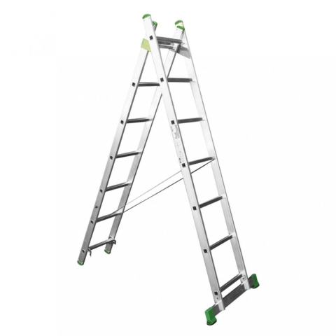 Könnyű és masszív alumíniumból készült minőségi kétágú létra, mely egyoldalas széttolható támasztó létrának is használható. Széles kényelmes, csúszásgátló kialakítású létrafokokkal, kicsúszást gátló lábakkal. Mindenféle padlózaton biztonságos és kénye
