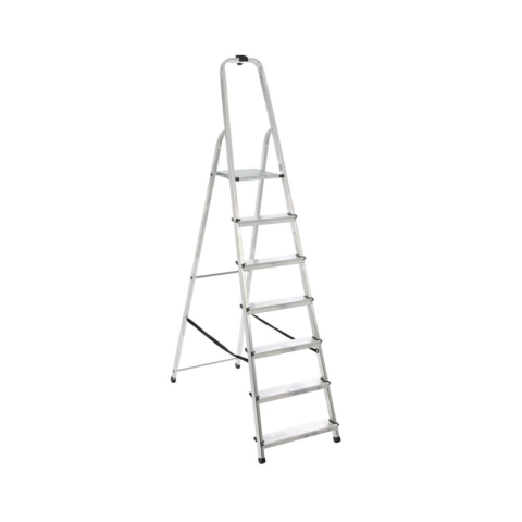 A létra alumíniumból készült, nagy ellenállású és ugyanakkor kis súlyú, otthoni használatra ajánlott. A stabilitás érdekében gumi lábakkal van felszerelve. A 80 mm-es lépcsőszélesség és a 60 cm magas sín stabilitást és kényelmet kínál a használat sorá