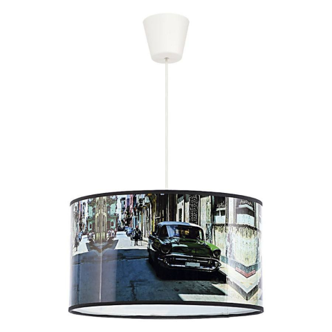 A Csillár Kuba 7077 egy könnyű, textilből készült test, amely nagyon jól illeszkedik egy modern dekorációhoz, avantgárd hatással. Városi tájképet mutat. Az átmérője 380 mm, a beállító magasság 30-120 cm. A felfüggesztés E27 foglalattal van ellátva. A