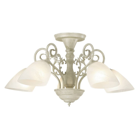 A Trieszt csillár antik fehér bevonatú fémből készül, öt karral , fehér üvegbolt- árnyékolással . A termék ideális alacsony otthonokhoz, magassága 31 cm. Ezt a lámpatestet öt E27 típusú forrás hajtja meg , maximális teljesítménye 5 x 40 W. A cs