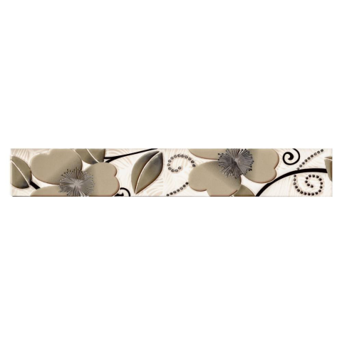 Ez a dekor csempe virágmintás, téglalap alakú, 6 x 40 cm méretű, és fényes felülettel rendelkezik. A képek bemutatásra szolgálnak, és lehet, hogy kis eltérések vannak az árnyalatban! A feltüntetett ár 1db-ra vonatkozik. Modell: Yukatan Szín: bézs M