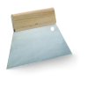 Fogazott spatulya kiváló minőségű acélból, ragasztóanyagok felhordásához, rozsdamentes Fogazás méretei: (fogszélesség, illetve metszéstávolság x foghíjak, illetve metszésszélesség x foghíjak, illetve metszésmélység) : 6 x 6 x 6