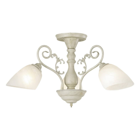 A Trieste mennyezeti lámpa antik fehér felületű fémből készül , 3 karral , fehér üveg lámpákkal ellátva. A termék ideális alacsony otthonokhoz, magassága 31 cm. Trieste belső mennyezeti lámpa van hajtott szerint három E27 típusú források egy max
